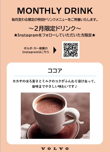 バレンタイン月という事もあり、ココアにはマシュマロが入ります*